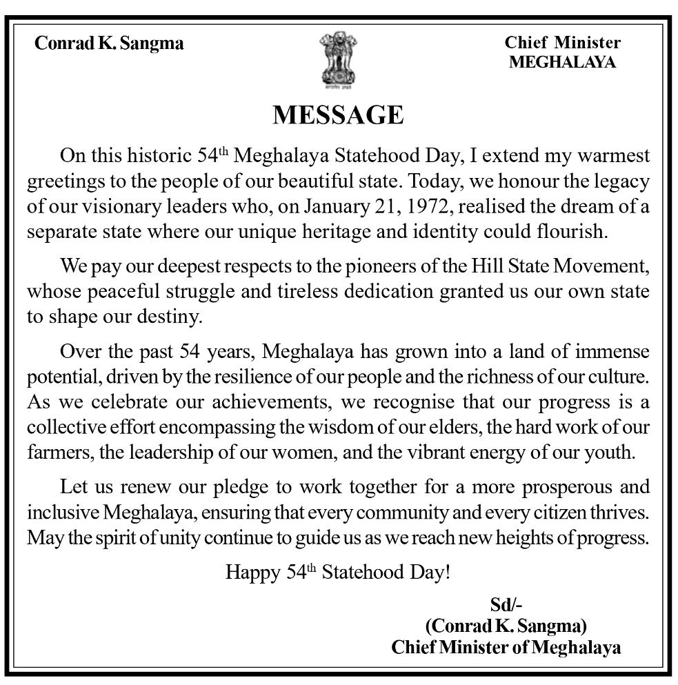 Rakhe ka Jylla ia ka Meghalaya Day ba 54 ha Baghmara | Pynbna u CM ia ki project ba kongsan ia ka thain