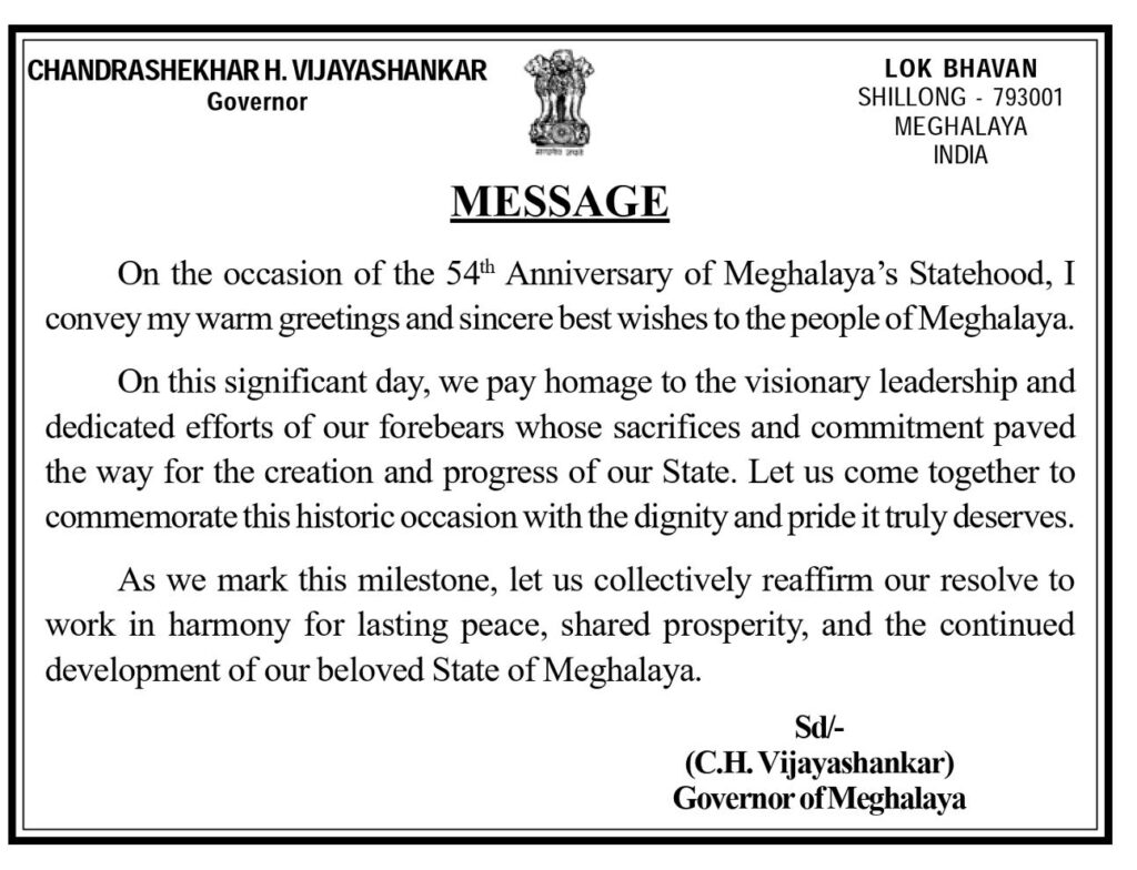 Kane ka jingrakhe kala sdang da ka jingrwai ia ka State Anthem da ka Khmih Choir, Shillong, la pynbud pat da ka jingpyni ia ka kolshor ki Khasi bad Garo. La pynbna ruh ia ka Meghalaya Day Awards, Excellence Awards bad Governor’s Police Medals kum ka jingithuh ia ka jingnoh synniang bad jingai jingshakri.